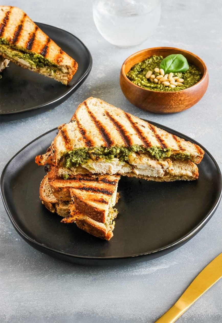 Crispy toasted bread filled with fresh tomatoes, cucumbers, gherkins, lettuce, and chipotle sauce, topped with your choice of cottage cheese or chicken and melted cheese for a savory finish. -