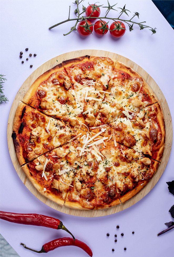 A timeless favorite featuring juicy cherry tomatoes, melted mozzarella, and rich pizza sauce on a perfectly baked, golden crust.